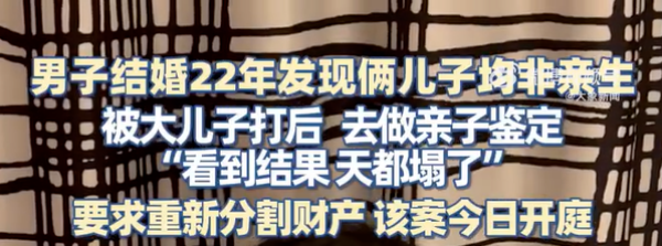 据新闻报道,山东淄博男子姜先生在结婚22年后发现,其与妻子所育的两个儿子均非亲生。