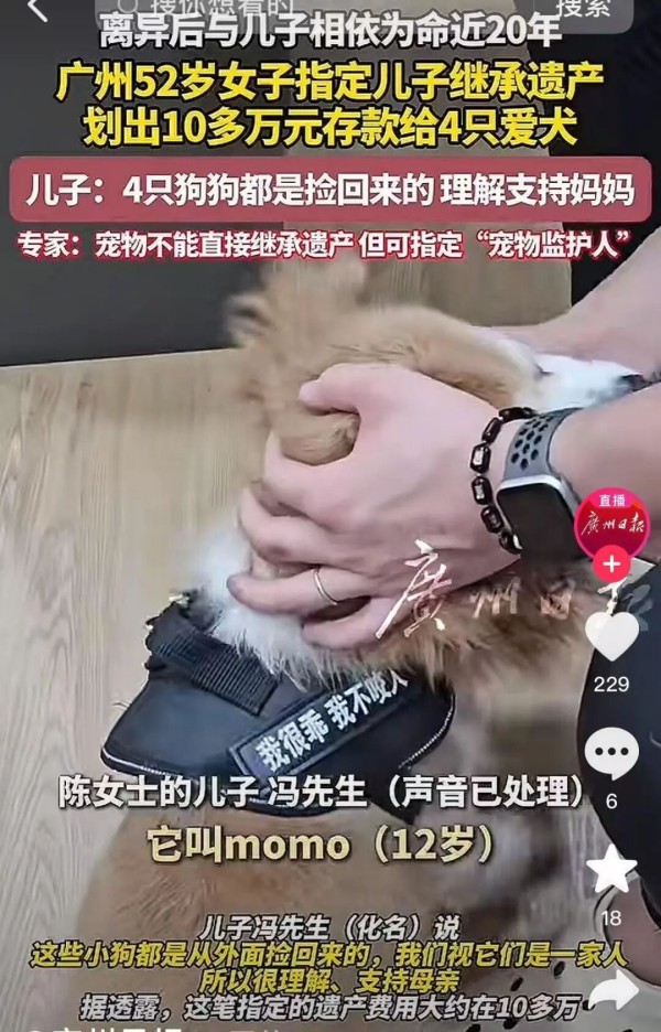 热搜!女子立遗嘱给宠物狗留了十几万,狗狗也能继承遗产了?