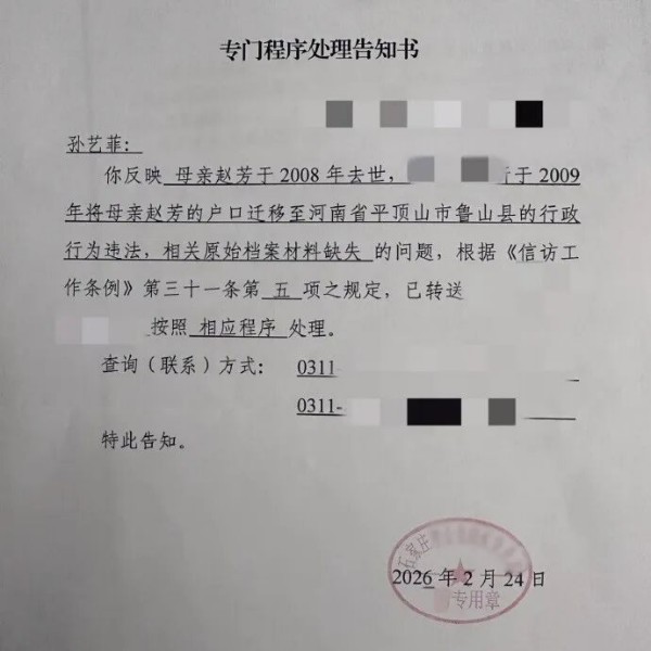 当事人孙艺菲(微博账号“石家庄赵芳女儿艺菲”)的求助,揭开了一段持续18年的委屈与不公。