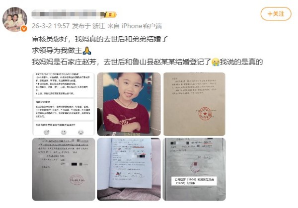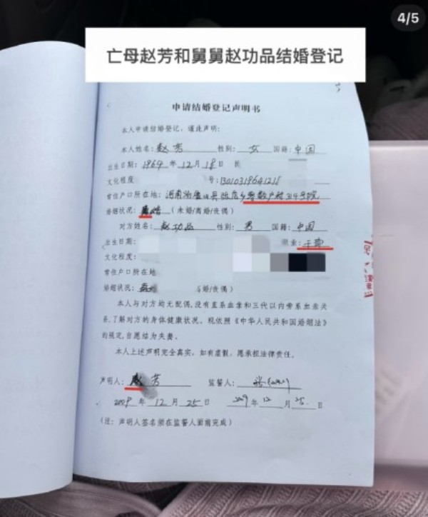 登记照片实为舅妈马某某冒名顶替,这一操作让赵芳在法律上“复活”,与亲弟形成了合法配偶关系。