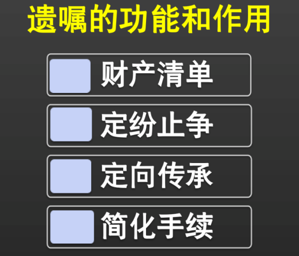 中华遗嘱库创办人陈凯认为,遗嘱具有“财产清单”、“定纷止争”、“定向传承”、“简化手续”的四大功能。他提醒大家,如果想将遗产给到想给的人,想要促进和谐家风,就要提前做好遗嘱安排,既能满足自己的心愿又能避免家人争斗。
