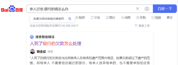 笔者在百度上搜索了“亲人去世,银行里的钱怎么办?”这一问题,发现能搜索到约一亿个相关结果,足见人们对这个问题的关心程度。