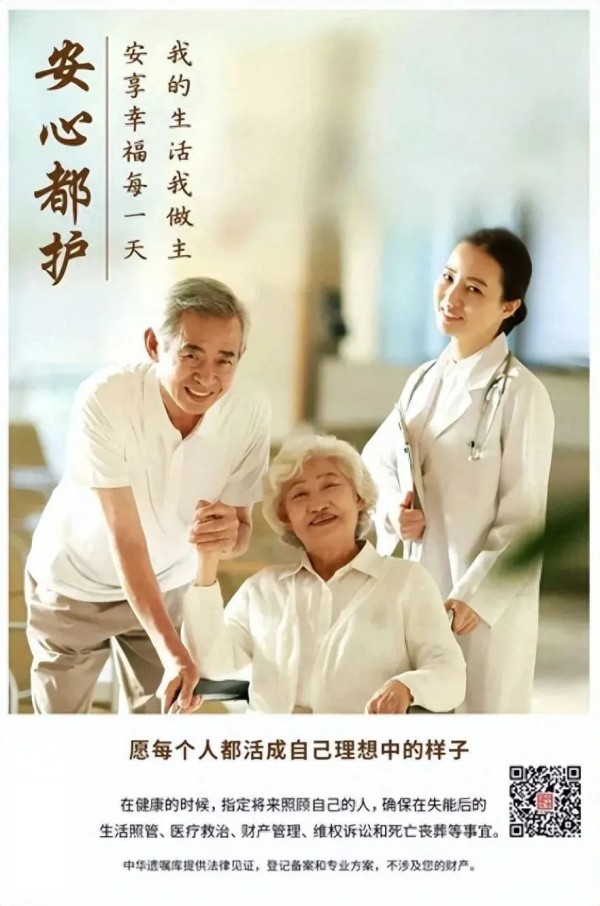 老年人还可以通过选择中华遗嘱库“安心都护”服务,通过意定监护的方式,在自己具备完全民事行为能力时,预先安排自己信任的子女或其它亲属作为自己的监护人,一旦自己失智、失能后,将由自己最信赖的监护人安排生活照料、医疗救治及财产管理。