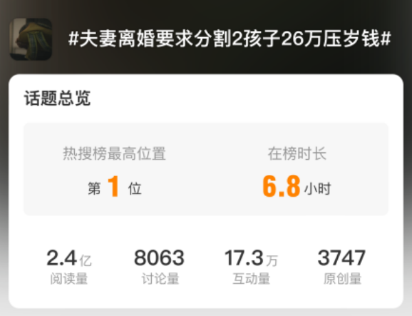 近日,一起夫妻离婚要求分割孩子压岁钱的案件冲上了热搜,引起了社会广泛关注。