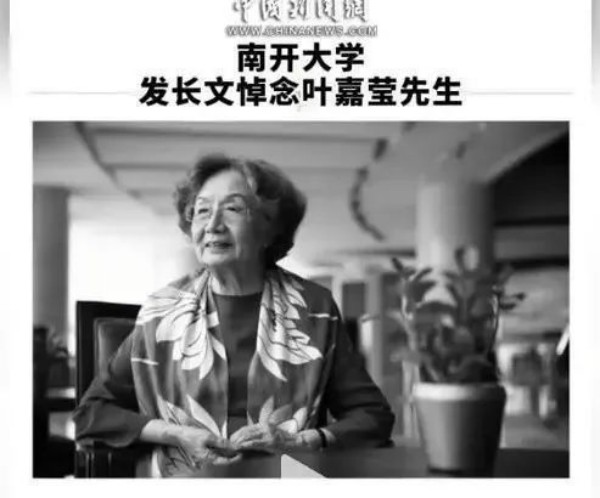 南开大学讣告称,叶嘉莹先生的逝世,是南开大学的巨大损失,也是中国教育界、学术界和国际文化交流领域的巨大损失。我们沉痛悼念叶嘉莹先生,深切怀念叶嘉莹先生。