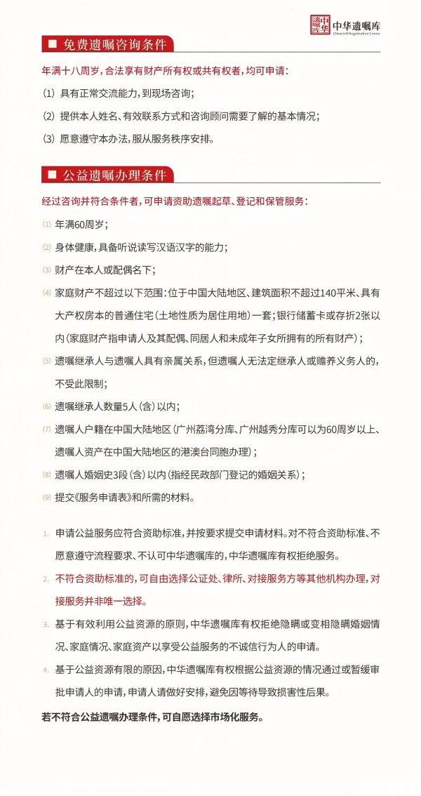 ②优先选择“非营利性机构”:商业机构以盈利为导向,公益机构更注重社会责任(如中华遗嘱库公益项目)